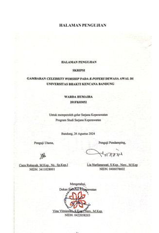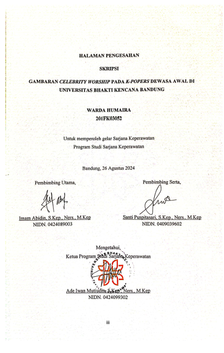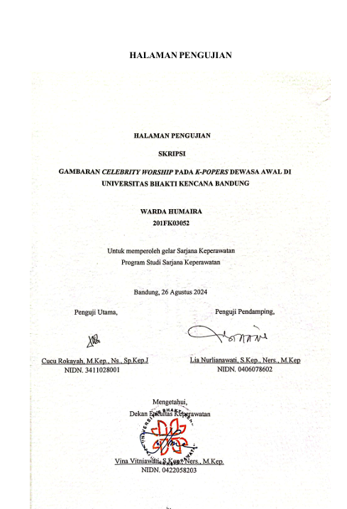 Humaira, Warda (2024) Gambaran Celebrity Worship pada K-Popers Dewasa Awal di Universitas Bhakti Kencana Bandung. Other thesis, Universitas Bhakti Kencana.