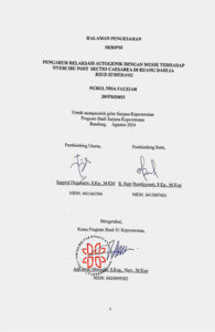 menimbulkan rasa nyaman.Tujuan pada penelitian ini menganalisis pengaruh relaksasi autogenik dengan musik terhadap nyeri ibu post sectio caesare di ruang dahlia rsud sumedang. Penelitian ini menggunakan metode quasi eksperimen one group pretest-postest design pada pasien post sectio caesarea. Teknik pengambilan sample menggunakan consecutive sampling 15 responden. Instrumen yang