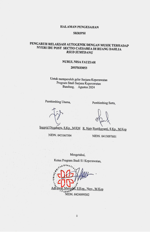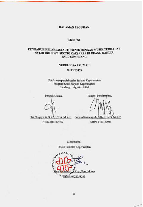 Nisa Fauziah, Nurul (2024) Pengaruh Relaksasi Autogenik dengan Musik Terhadap Nyeri Ibu Post Sectio Caesarea di Ruang Dahlia RSUD Sumedang. Other thesis, Universitas Bhakti Kencana.