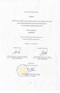 Camelia, Syifa (2024) Hubungan Spiritual Well Being dengan Quarter Crisis pada Fresh Graduate Sarjana Keperawatan di Universitas Bhakti Kencana. Other thesis, Universitas Bhakti Kencana.