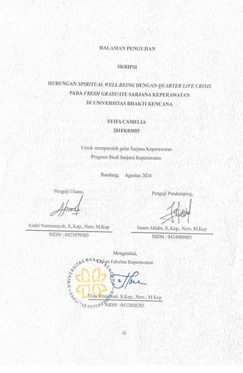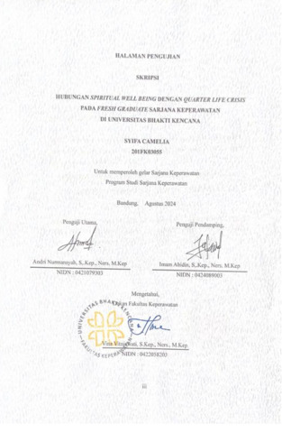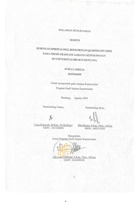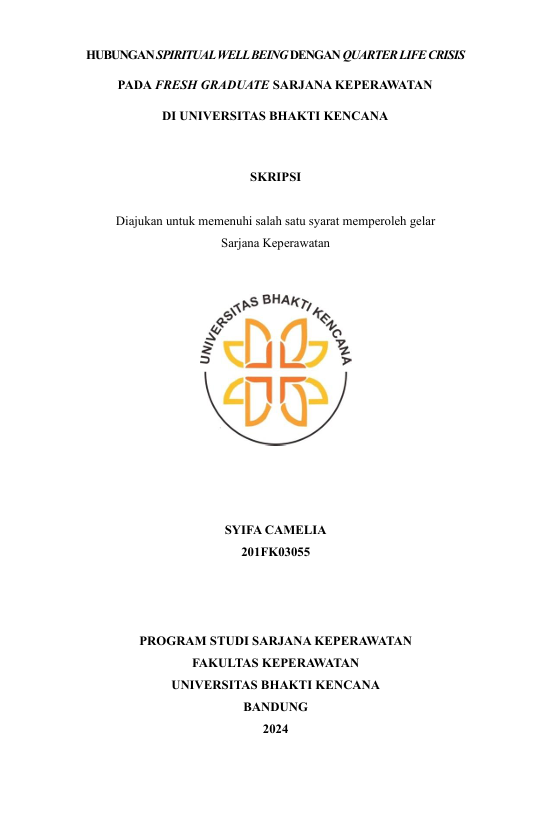 Camelia, Syifa (2024) Hubungan Spiritual Well Being dengan Quarter Crisis pada Fresh Graduate Sarjana Keperawatan di Universitas Bhakti Kencana. Other thesis, Universitas Bhakti Kencana.