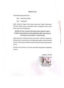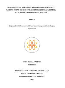 Rizkia Nadifah, Syifa (2024) Hubungan Pola Makan dan Kepatuhan Minum Tablet Tambah Darah dengan Kadar Hemoglobin pada Remaja Putri Kelas VII di SMPN 1 Tanjungsari. Other thesis, Universitas Bhakti Kencana.