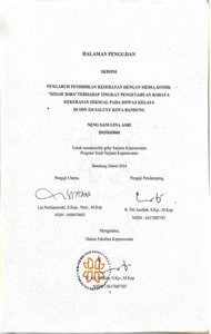 Sani Gina Asri, Neng (2024) Pengaruh Pendidikan Kesehatan dengan Media Komik "Kisah Dara" Terhadap Tingkat Pengetahuan Bahaya Kekerasan Seksual pada Siswa/I Kelas 6 di SDN 234 Saluyu Kota Bandung. Other thesis, Universitas Bhakti Kencana.