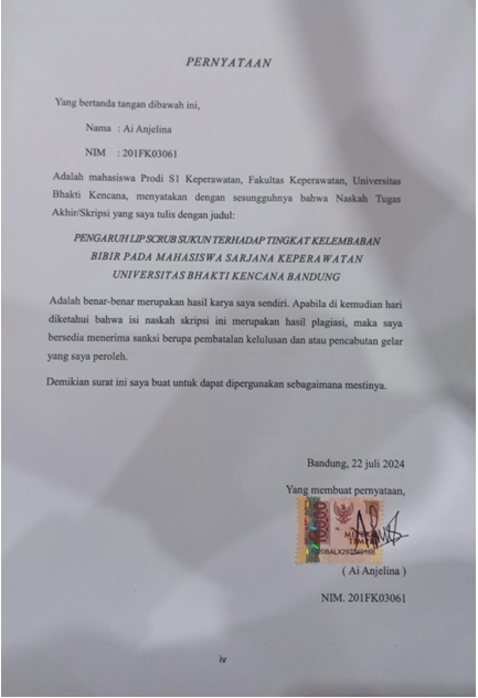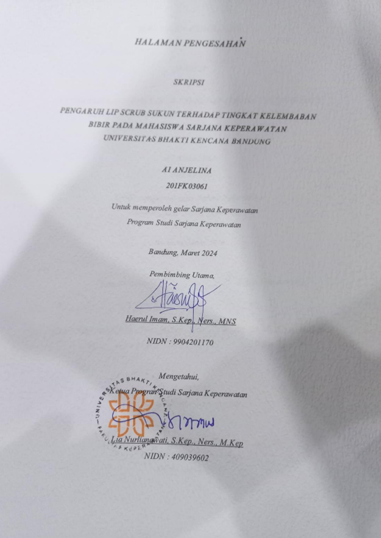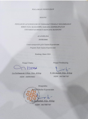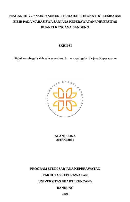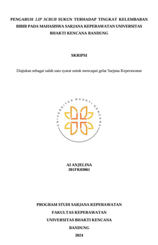 Anjelina, Ai (2024) Pengaruh Lip Scrub Sukun Terhadap Tingkat Kelembaban Bibir pada Mahasiswa Sarjana Keperawatan Universitas Bhakti Kencana Bandung. Other thesis, Universitas Bhakti Kencana.