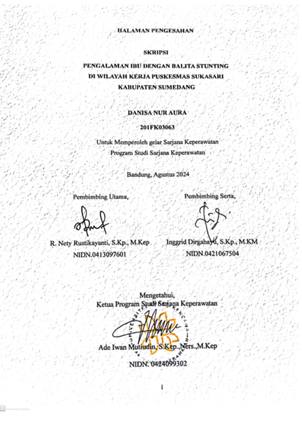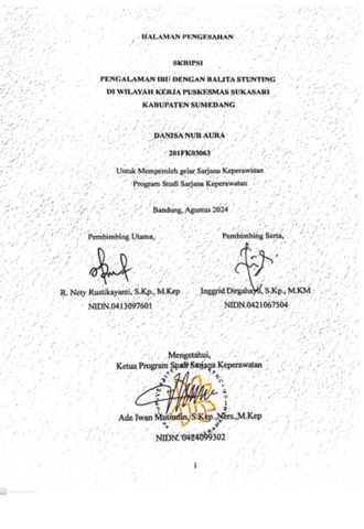 Nur Aura, Danisa (2024) Pengalaman Ibu dengan Balita Stunting di Wilayah Kerja Puskesmas Sukasari Kabupaten Sumedang. Other thesis, Universitas Bhakti Kencana.