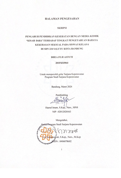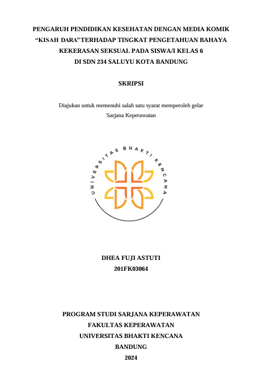 Fuji Astuti, Dhea (2024) Pengaruh Pendidikan Kesehatan dengan Media Komik "Kisah Dara" Terhadap Tingkat Pengetahuan Bahaya Kekerasan Seksual pada Siswa/I Kelas 6 di SDN 234 Saluyu Kota Bandung. Other thesis, Universitas Bhakti Kencana.