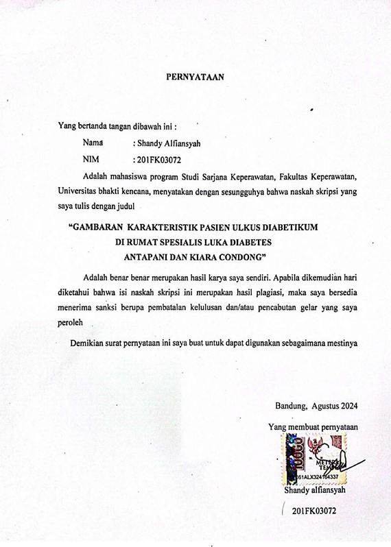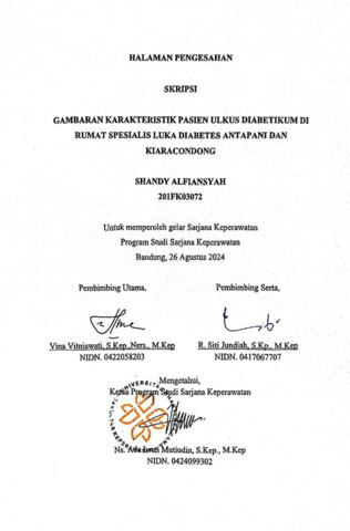 Alfiansyah, Shandy (2024) Gambaran Karakteristik Pasien Ulkus Diabetikum di Rumat Spesialis Luka Diabetes Antapani dan Kiara Condong. Other thesis, Universitas Bhakti Kencana.