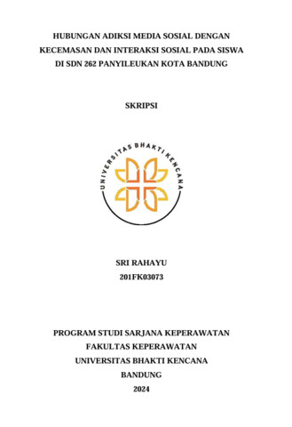 Rahayu, Sri (2024) Hubungan Adiksi Media Sosial dengan Kecemasan dan Interaksi Sosial pada Siswa di SDN 262 Panyileukan Kota Bandung. Other thesis, Universitas Bhakti Kencana.