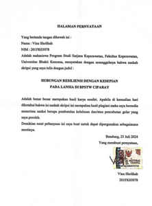 Sholihah, Vina (2024) Hubungan Resiliensi dengan Kesepian pada Lansia di BPSTW Ciparay. Other thesis, Universitas Bhakti Kencana.