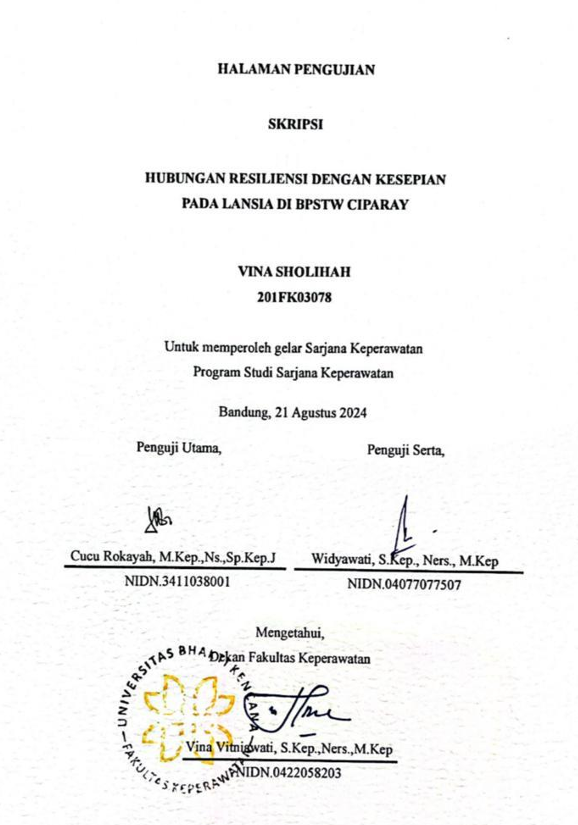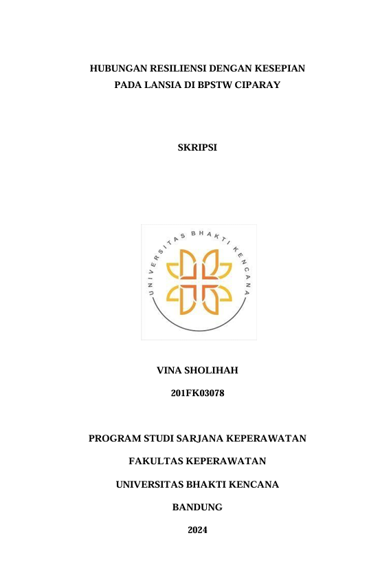 Sholihah, Vina (2024) Hubungan Resiliensi dengan Kesepian pada Lansia di BPSTW Ciparay. Other thesis, Universitas Bhakti Kencana.