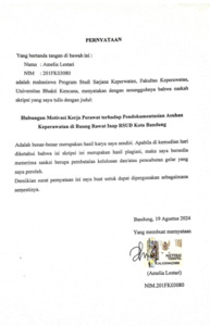 Lestari, Amelia (2024) Hubungan Motivasi Kerja Perawat Terhadap Pendokumentasian Asuhan Keperawatan di Ruang Rawat Inap RSUD Kota Bandung. Other thesis, Universitas Bhakti Kencana.