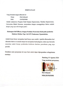 Irdiyanti, Rini (2024) Hubungan Self Efficacy dengan Perilaku Perawatan Kaki pada Penderita Diabetes Melitus Tipe 2 di UPT Puskesmas Cipamokolan. Other thesis, Universitas Bhakti Kencana.