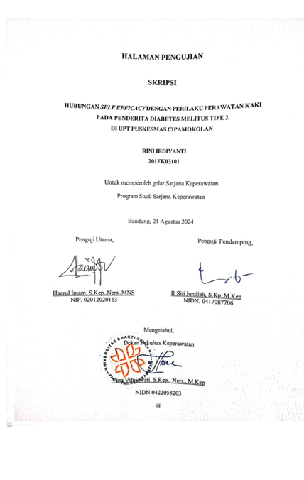 Irdiyanti, Rini (2024) Hubungan Self Efficacy dengan Perilaku Perawatan Kaki pada Penderita Diabetes Melitus Tipe 2 di UPT Puskesmas Cipamokolan. Other thesis, Universitas Bhakti Kencana.