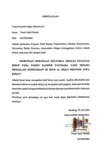 Jamil Hartati, Tantri (2024) Hubungan Dukungan Keluarga dengan Kualitas Hidup pada Pasien Kanker Payudara yang Menjalani Kemoterapi di RSUD Al Ihsan Provinsi Jawa Barat. Other thesis, Universitas Bhakti Kencana.
