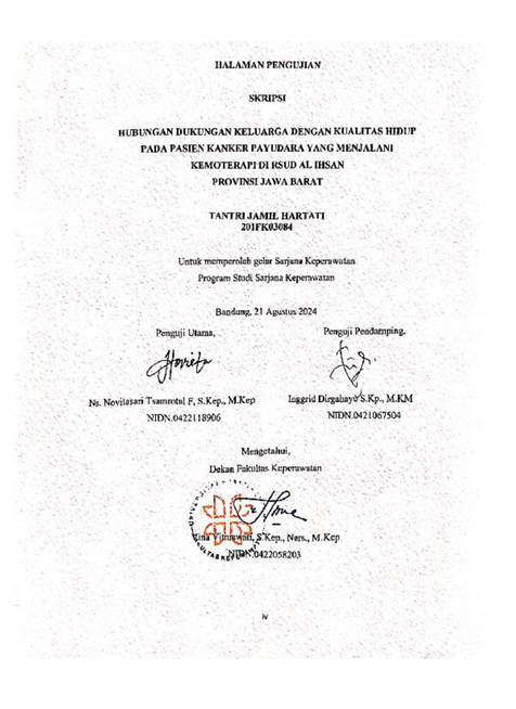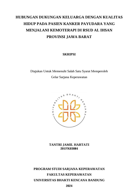 Jamil Hartati, Tantri (2024) Hubungan Dukungan Keluarga dengan Kualitas Hidup pada Pasien Kanker Payudara yang Menjalani Kemoterapi di RSUD Al Ihsan Provinsi Jawa Barat. Other thesis, Universitas Bhakti Kencana.