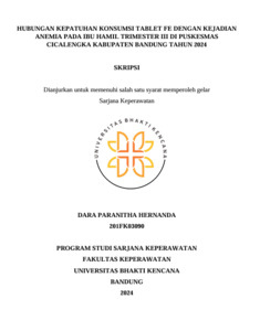 Paranitha Hernanda, Dara (2024) Hubungan Kepatuhan Konsumsi Tablet FE dengan Kejadian Anemia pada Ibu Hamil Trimester III di Puskesmas Cicalengka Kabupaten Bandung Tahun 2024. Other thesis, Universitas Bhakti Kencana.