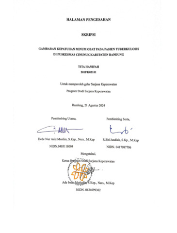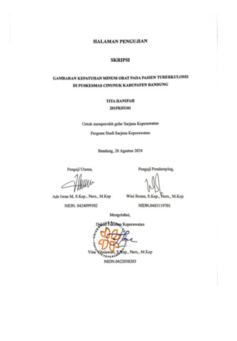 Hanifah, Tita (2024) Gambaran Pengetahuan Minum Obat pada Pasien Tuberkolosis di Puskesmas Cinunuk Kabupaten Bandung. Other thesis, Universitas Bhakti Kencana.