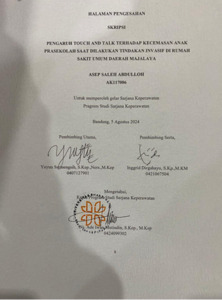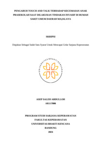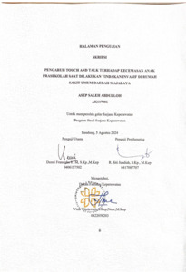 Saleh Abdulloh, Asep (2024) Pengaruh Touch and Talk Terhadap Kecemasan Anak Prasekolah Saat Dilakukan Tindakan Invasif di Rumah Sakit Umum Daerah Majalaya. Other thesis, Universitas Bhakti Kencana.