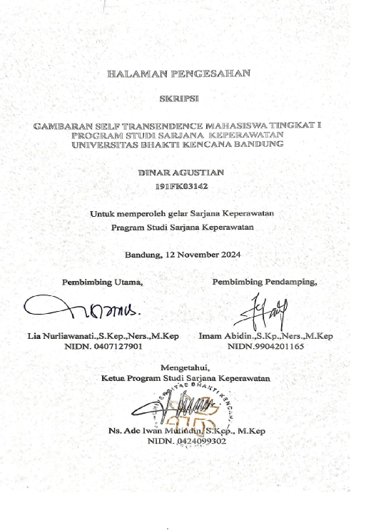 Agustian, Dinar (2024) Gambaran Self Transendence Mahasiswa Tingkat I Program Studi Sarjana Keperawatan Universitas Bhakti Kencana Bandung. Other thesis, Universitas Bhakti Kencana.