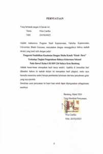 Cantika, Nisa (2024) Pengaruh Pendidikan Kesehatan dengan Media Komik "Kisah Dara" Terhadap Tingkat Pengetahuan Bahaya Kekerasan Seksual pada Siswa/I Kelas 6 di SDN Saluyu Kota Bandung. Other thesis, Universitas Bhakti Kencana.