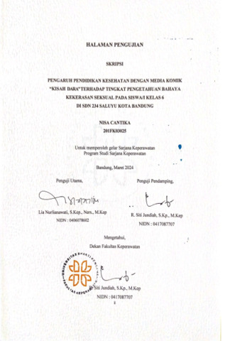 Cantika, Nisa (2024) Pengaruh Pendidikan Kesehatan dengan Media Komik "Kisah Dara" Terhadap Tingkat Pengetahuan Bahaya Kekerasan Seksual pada Siswa/I Kelas 6 di SDN Saluyu Kota Bandung. Other thesis, Universitas Bhakti Kencana.