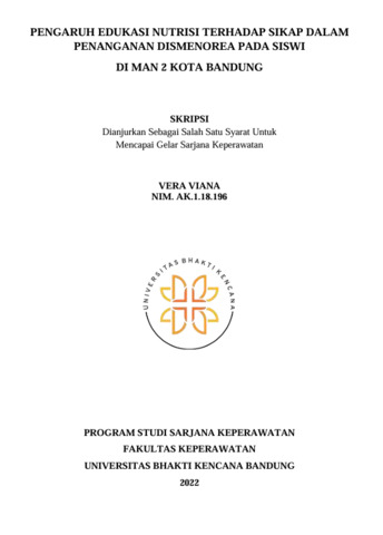 asupan nutrisi. Pemberian informasi tentang nutrisi yang berperan dalam dismenorea dapat dilakukan melalui edukasi. Edukasi ditujukan untuk menambah pengetahuan tentang penanganan dismenorea dan merubah sikap dalam penanganan dismenorea. Tujuan penelitian ini untuk mengetahui pengaruh edukasi nutrisi terhadap sikap dalam penanganan dismenorea pada siswi di MAN 2 Kota Bandung. Jenis penelitian ini adalah Pre-eksperimental, dengan rancangan one group