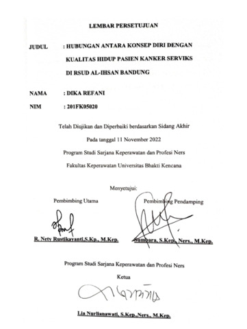 Refani, Dika (2022) Hubungan Antara Konsep Diri dengan Kualitas Hidup Pasien Kanker Serviks di RSUD Al-Ihsan Bandung. Other thesis, Universitas Bhakti Kencana.