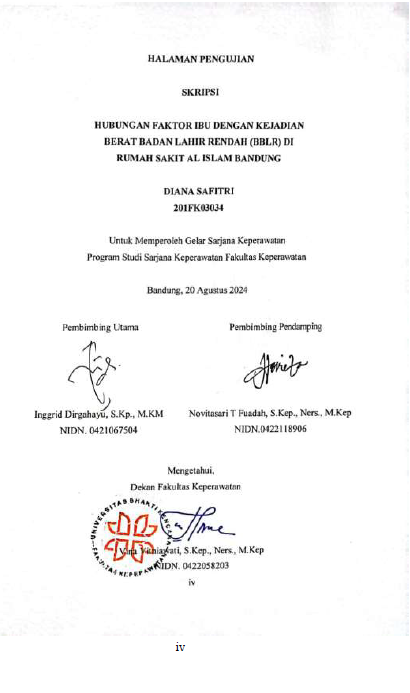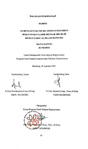 Safitri, Diana (2024) Hubungan Faktor Ibu dengan Kejadian Berat Badan Lahir Rendah (BBLR) di Rumah Sakit Al Islam Bandung. Other thesis, Universitas Bhakti Kencana.