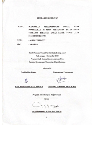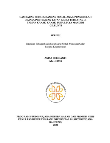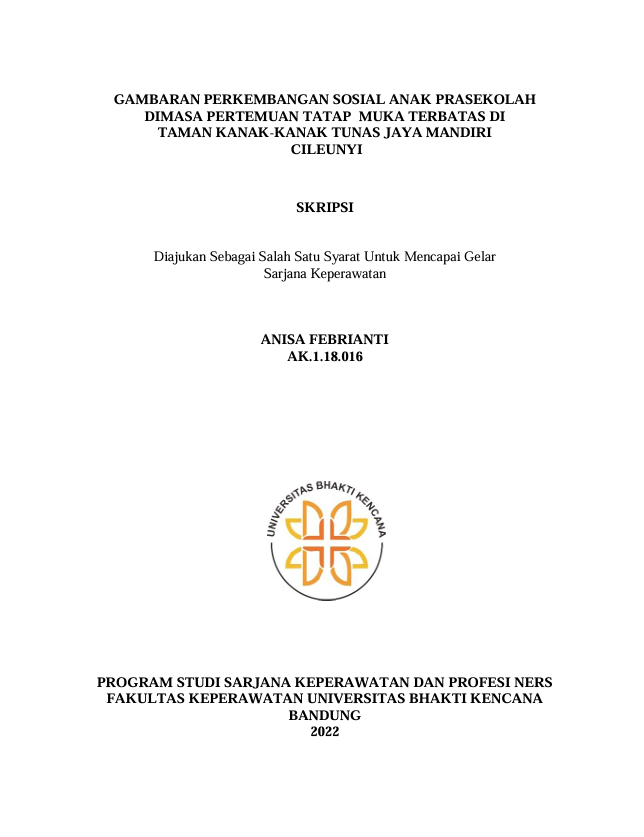 Febrianti, Anisa (2022) Gambaran Perkembangan Sosial Anak Prasekolah Dimasa Pertemuan Tatap Muka Terbatas di Taman Kanak-Kanak Tunas Jaya Mandiri Cileunyi. Other thesis, Universitas Bhakti Kencana.