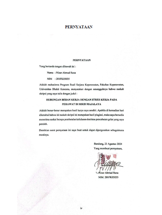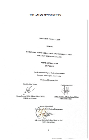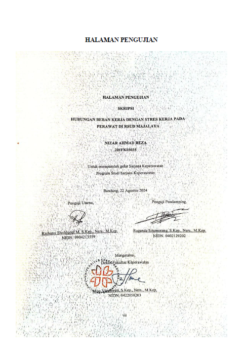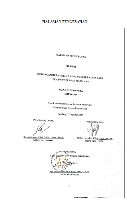 Ahmad Reza, Nizar (2024) Hubungan Beban Kerja dengan Stres Kerja pada Perawat di RSUD Majalaya. Other thesis, Universitas Bhakti Kencana.