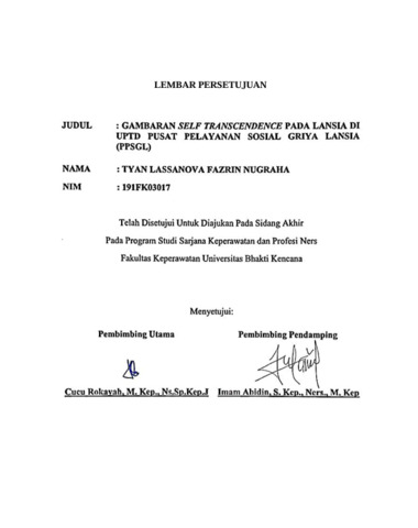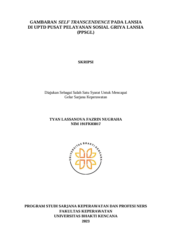 Lassanova Fazrin Nugraha, Tyan (2023) Gambaran Self Transcendence pada Lansia di UPTD Pusat Pelayanan Sosial Griya Lansia (PPSGL). Other thesis, Universitas Bhakti Kencana.