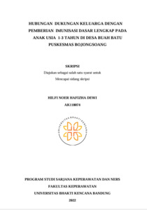 Noer Hafizha Dewi, Hilfi (2022) Hubungan Dukungan Keluarga dengan Pemberian Imunisasi Dasar Lengkap pada Anak Usia 1-3 Tahun di Desa Buah Batu Puskesmas Bojongsoang. Other thesis, Universitas Bhakti Kencana.