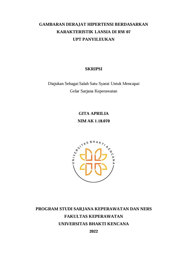 Aprilia, Gita (2022) Gambaran Derajat Hipertensi Berdasarkan Karakteristik Lansia di RW 07 UPT Panyileukan. Other thesis, Universitas Bhakti Kencana.
