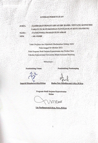 Imarah Nusyaibah, Fathunnisa (2022) Gambaran Pengetahuan Ibu Hamil Tentang Konsumsi Tablet FE di Puskesmas Panyileukan Kota Bandung. Other thesis, Universitas Bhakti Kencana.