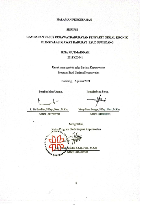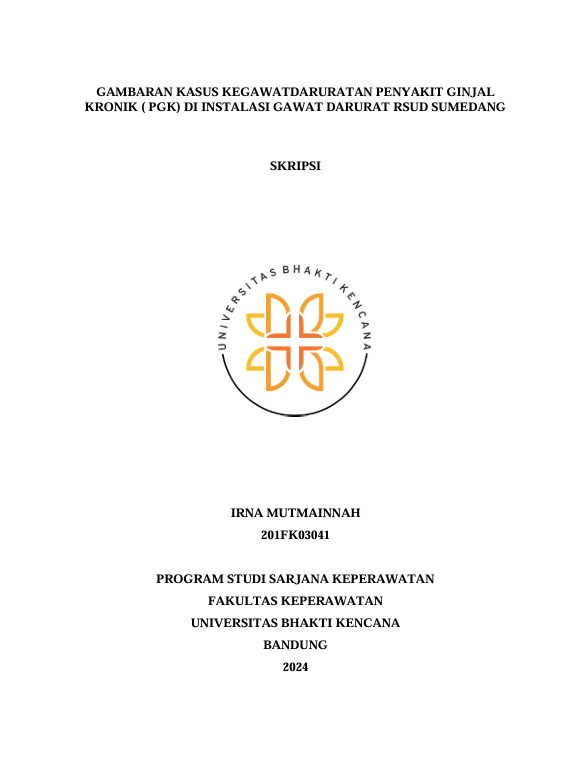 Mutmainnah, Irna (2024) Gambaran Kasus Kegawatdaruratan Penyakit Ginjal Kronik (PGK) di Instalasi Gawat Darurat RSUD Sumedang. Other thesis, Universitas Bhakti Kencana.