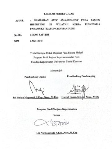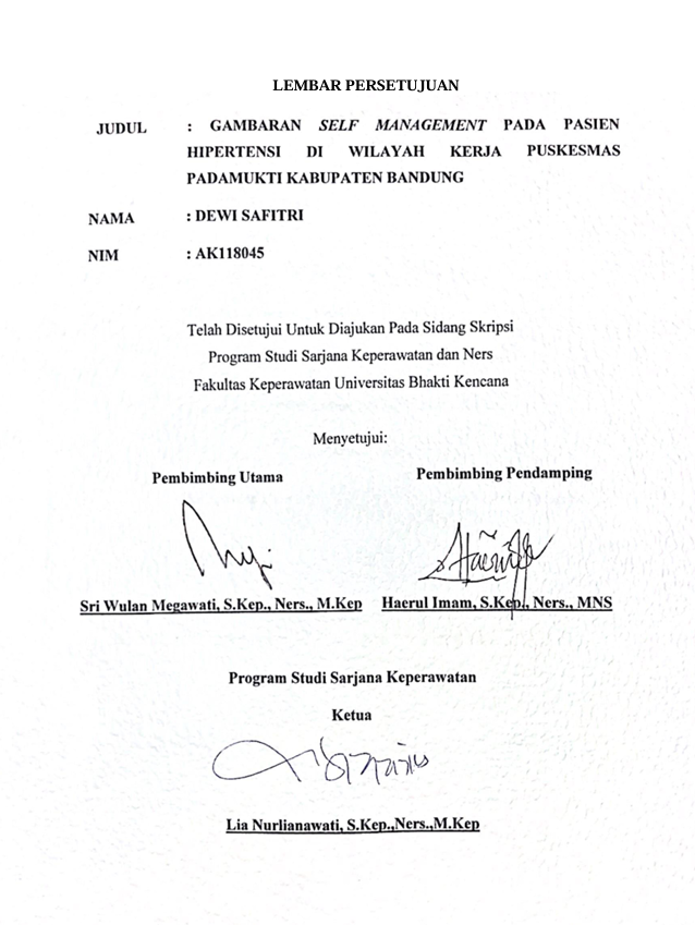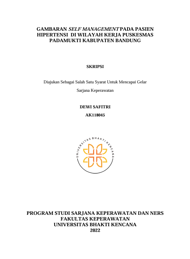 Safitri, Dewi (2022) Gambaran Self Management pada Pasien Hipertensi di Wilayah Kerja Puskesmas Padamukti Kabupaten Bandung. Other thesis, Universitas Bhakti Kencana.