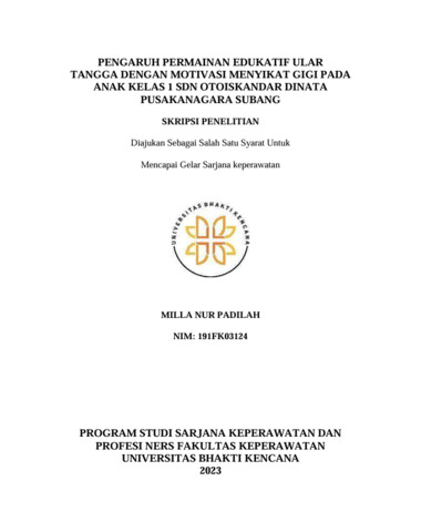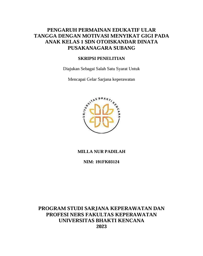 Nur Padilah, Milla (2023) Pengaruh Permainan Edukatif Ular Tangga dengan Motivasi Menyikat Gigi pada Anak Kela 1 SDN Otoiskandar Dinata Pusakanagara Subang. Other thesis, Universitas Bhakti Kencana.