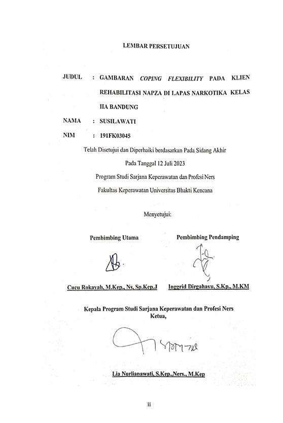 -, Susilawati (2023) Gambaran Coping Flexibility pada Klien Rehabilitasi NAPZA di Lapas Narkotika Kelas IIA Bandung. Other thesis, Universitas Bhakti Kencana.