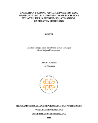 Andini, Anggi (2023) Gambaran Feeding Practice pada Ibu yang Mempunyai Balita Stunting di Desa Cileles Wilayah Kerja Puskesmas Jatinangor Kabupaten Sumedang. Other thesis, Universitas Bhakti Kencana.