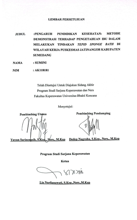 -, Sumini (2022) Pengaruh Pendidikan Kesehatan: Metode Demonstrasi Terhadap Pengetahuan Ibu Dalam Melakukan Tindakan Tepid Sponge Bath di Wilayah Kerja Puskesmas Jatinangor Kabupaten Sumedang. Other thesis, Universitas Bhakti Kencana.
