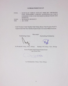 Ari Rafly, Muhamad (2022) Hubungan Empati dengan Perilaku Prososial pada Mahasiswa Sarjana Keperawatan Pasca Pandemi Covid-19 di Universitas Bhakti Kencana Bandung. Other thesis, Universitas Bhakti Kencana.