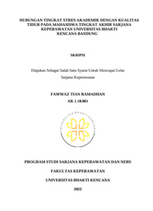 Tian Ramadhan, Fawwaz (2022) Hubungan Tingkat Stress Akademik dengan Kualitas Tidur pada Mahasiswa Tingkat Akhir Sarjana Keperawatan Universitas Bhakti Kencana Bandung. Other thesis, Universitas Bhakti Kencana.