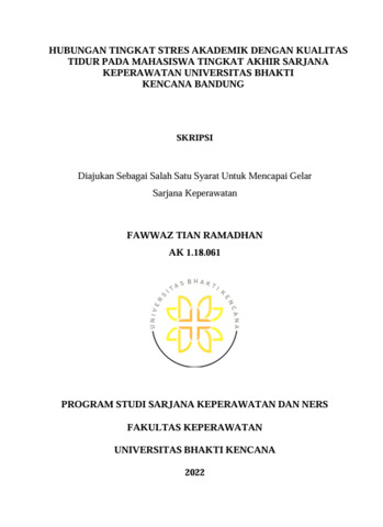 antara stress akademik dengan kualitas tidur pada mahasiswa tingkat akhir dalam menyusun skripsi di universitas Bhakti Kencana Bandung. Diharapkan kepada pihak Universitas, kembali meninjau dan menyediakan sarana maupun kegiatan