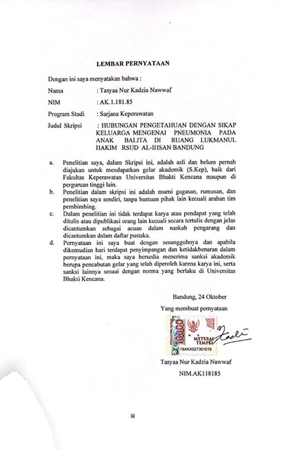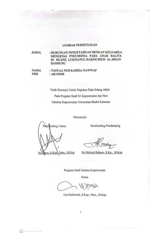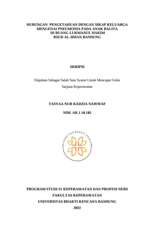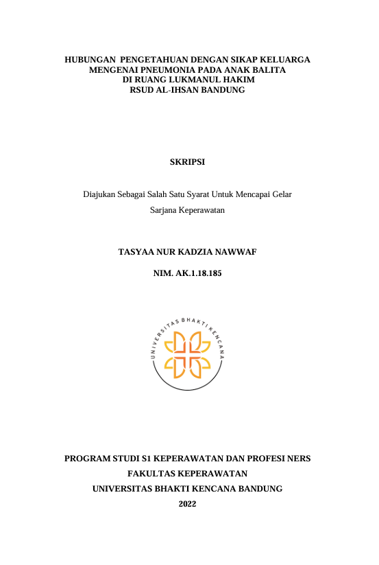 Nur Kadzia Nawwaf, Tasyaa (2022) Hubungan Pengetahuan dengan Sikap Keluarga Mengenai Pneumonia pada Anak Balita di Ruang Lukmanul Hakim RSUD Al-Ihsan Bandung. Other thesis, Universitas Bhakti Kencana.