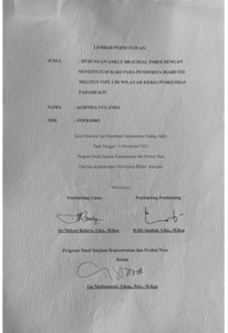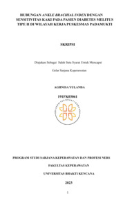 Yulanda, Aghnisa (2023) Hubungan Ankle Brachial Index dengan Sensitivitas Kaki pada Pasien Diabetes Melitus Tipe II di Wilayah Kerja Puskesmas Padamukti. Other thesis, Universitas Bhakti Kencana.