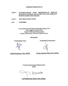 Oktaviana Putri, Vina (2023) Fakto-Faktor yang Berhubungan dengan Kejadian Ketuban Pecah Dini pada Ibu Bersalin di RSUD Kabupaten Subang. Other thesis, Universitas Bhakti Kencana.