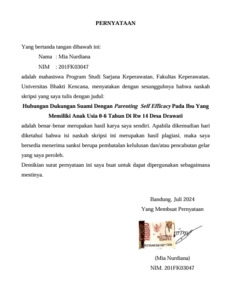 Nurdiana, Mia (2024) Hubungan Dukungan Suami dengan Parenting Self Efficacy pada Ibu yang Memiliki Anak Usia 0 - 6 Tahun di RW 14 Desa Drawati. Other thesis, Universitas Bhakti Kencana.