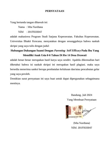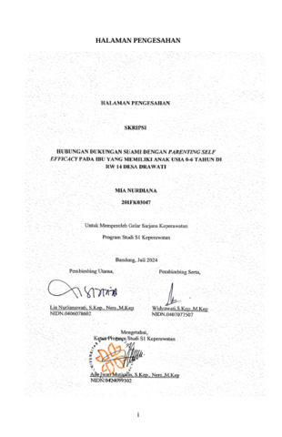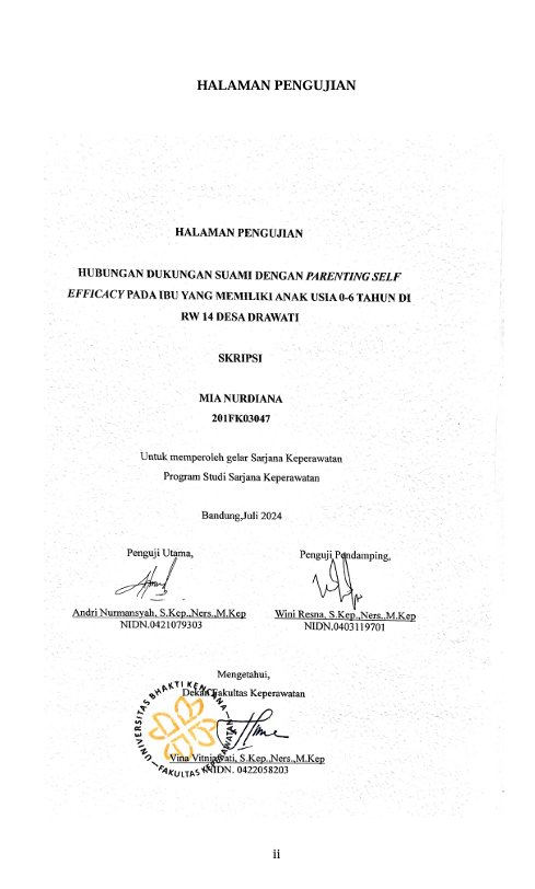 Nurdiana, Mia (2024) Hubungan Dukungan Suami dengan Parenting Self Efficacy pada Ibu yang Memiliki Anak Usia 0 - 6 Tahun di RW 14 Desa Drawati. Other thesis, Universitas Bhakti Kencana.